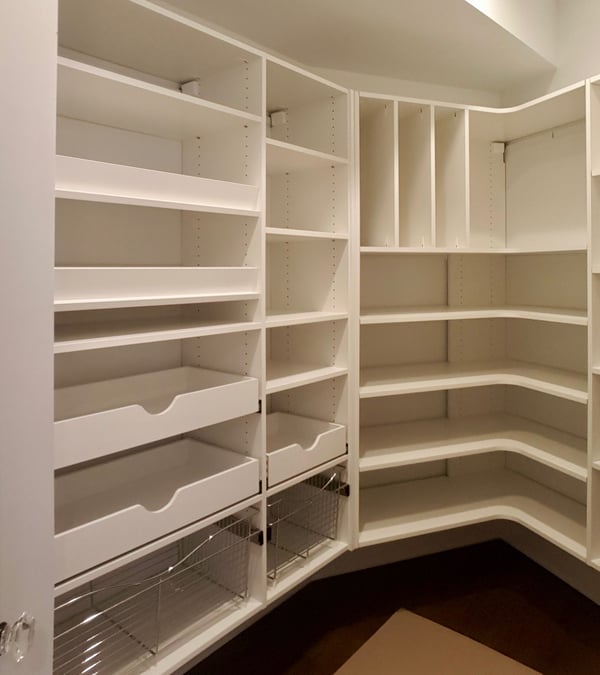 Consider easy-access solutions like corner radius shelves to maximize space and avoid lost items in otherwise dark and hard-to-reach corners. Corner radius shelves are custom-cut to fit your pantry.
